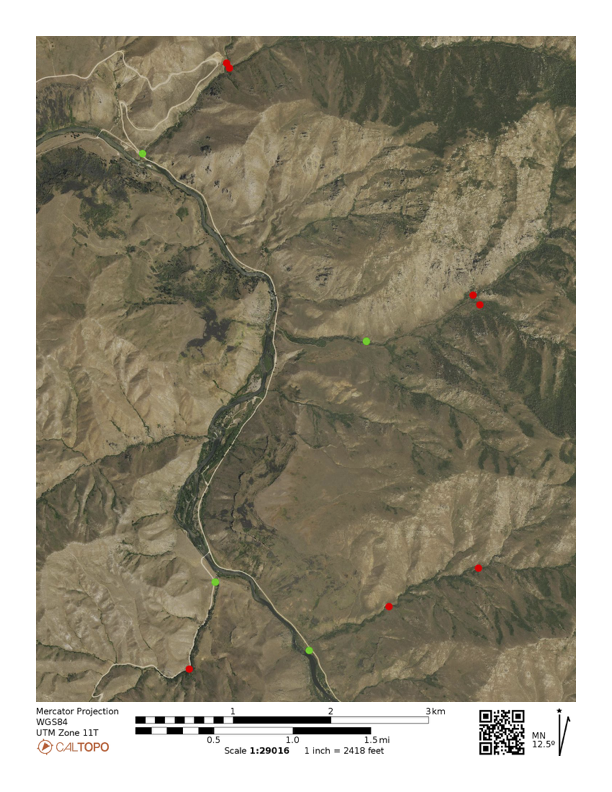 - Cow Creek shows eDNA presence near its confluence with the SF Boise River but negative one kilometer upstream. This is consistent with field observations from recent years.