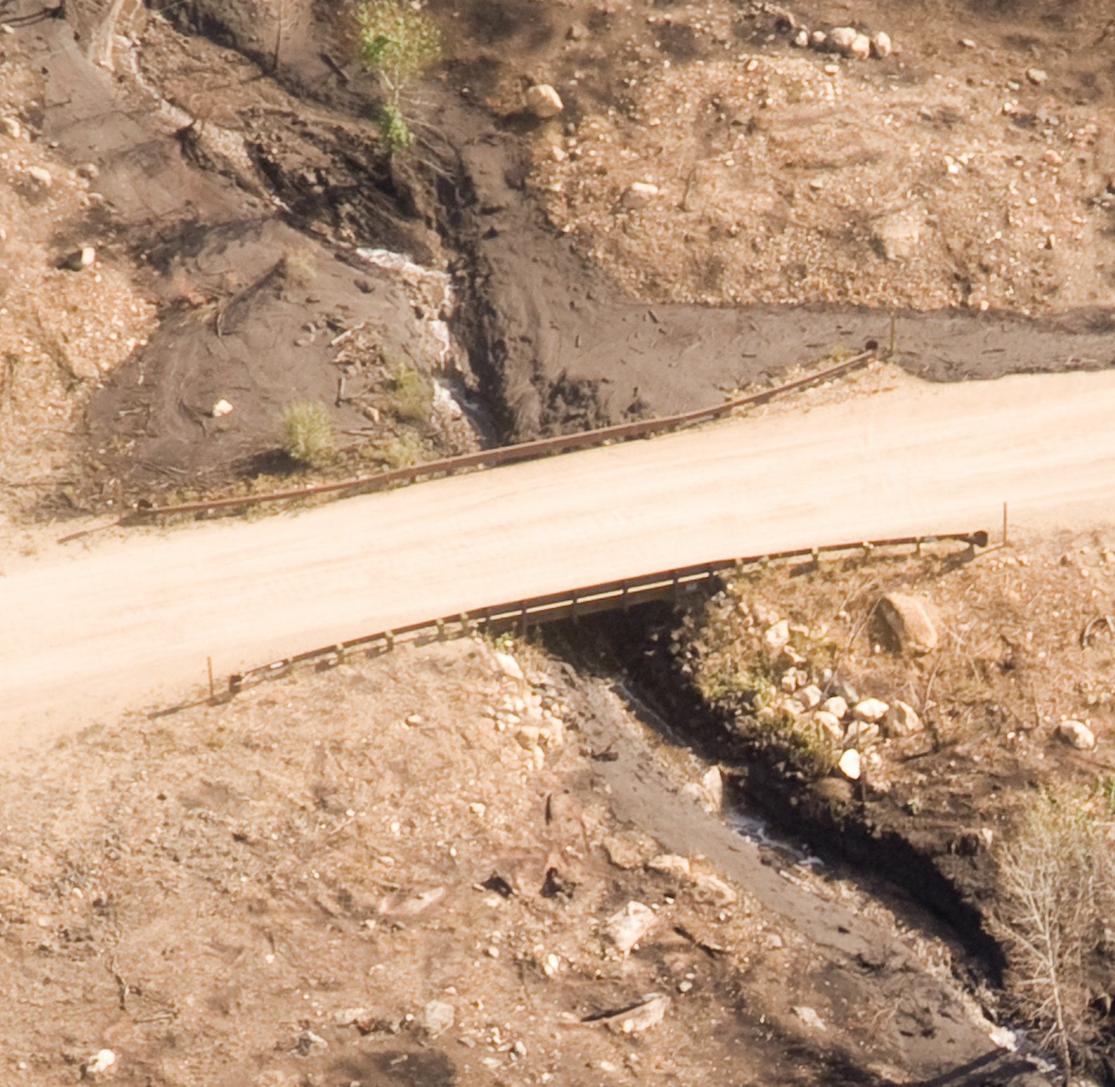 A mud crust over the plate on the bridge. Mud deposited from the numerous debris flow episodes 2013-2014.