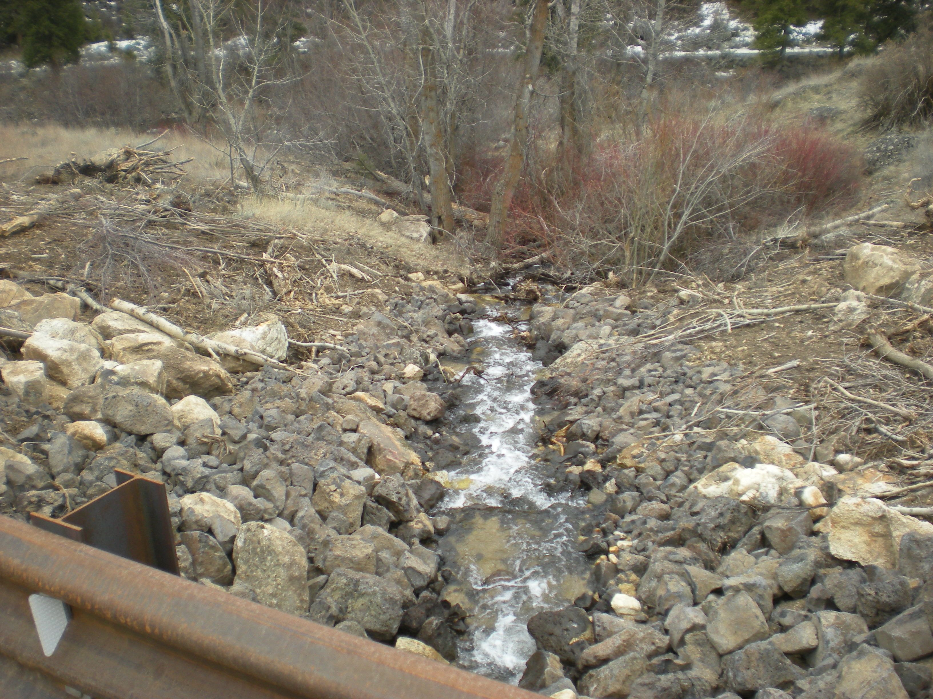 While the slurry was confined to under the bridge many of the grade control structures in the channel were swept into the river. Here is how the channel looks today: