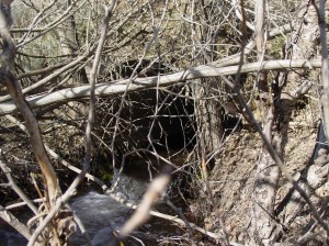 - Bypass pipe in foreground and culvert still under the road. Once the stream was blocked the entire flow fits in the 24-inch pipe.