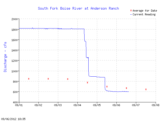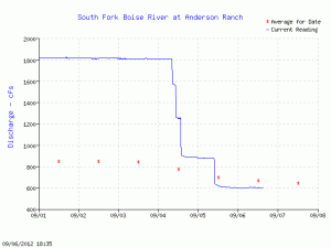 One indication of the water year ending in a whimper is what happened with the flow gage on the South Fork Boise a mile or so downstream of Anderson Ranch Dam:
