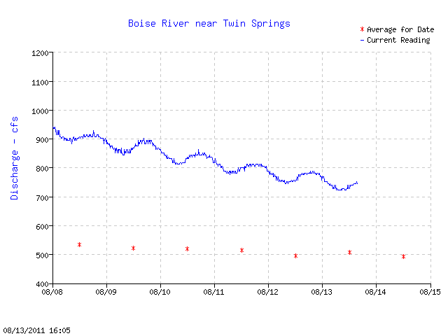 Based on these indicators we appear poised on the flow transition, and the South Fork Boise will start the step down to the fall flows of 600 cfs.